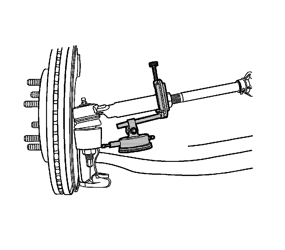 5. Place the dial indicator at zero, pull outward on the tire. Record the amount of movement in the joint.