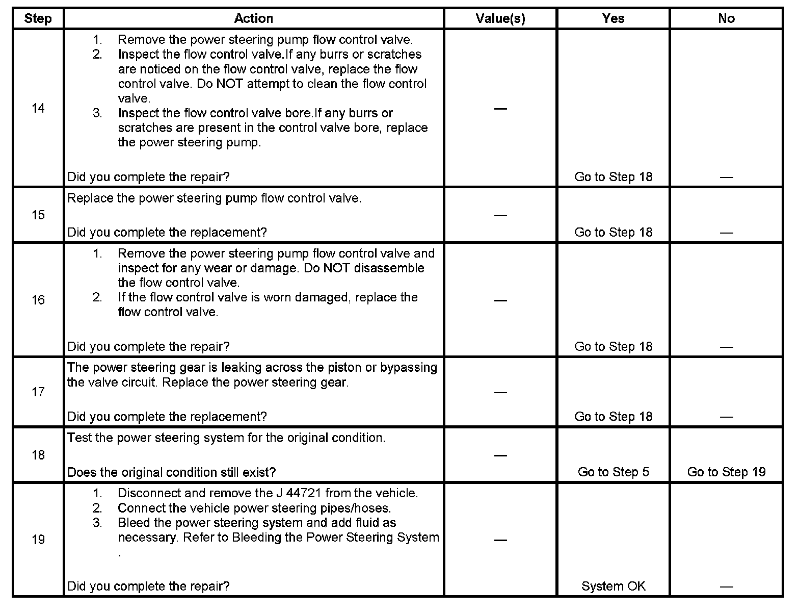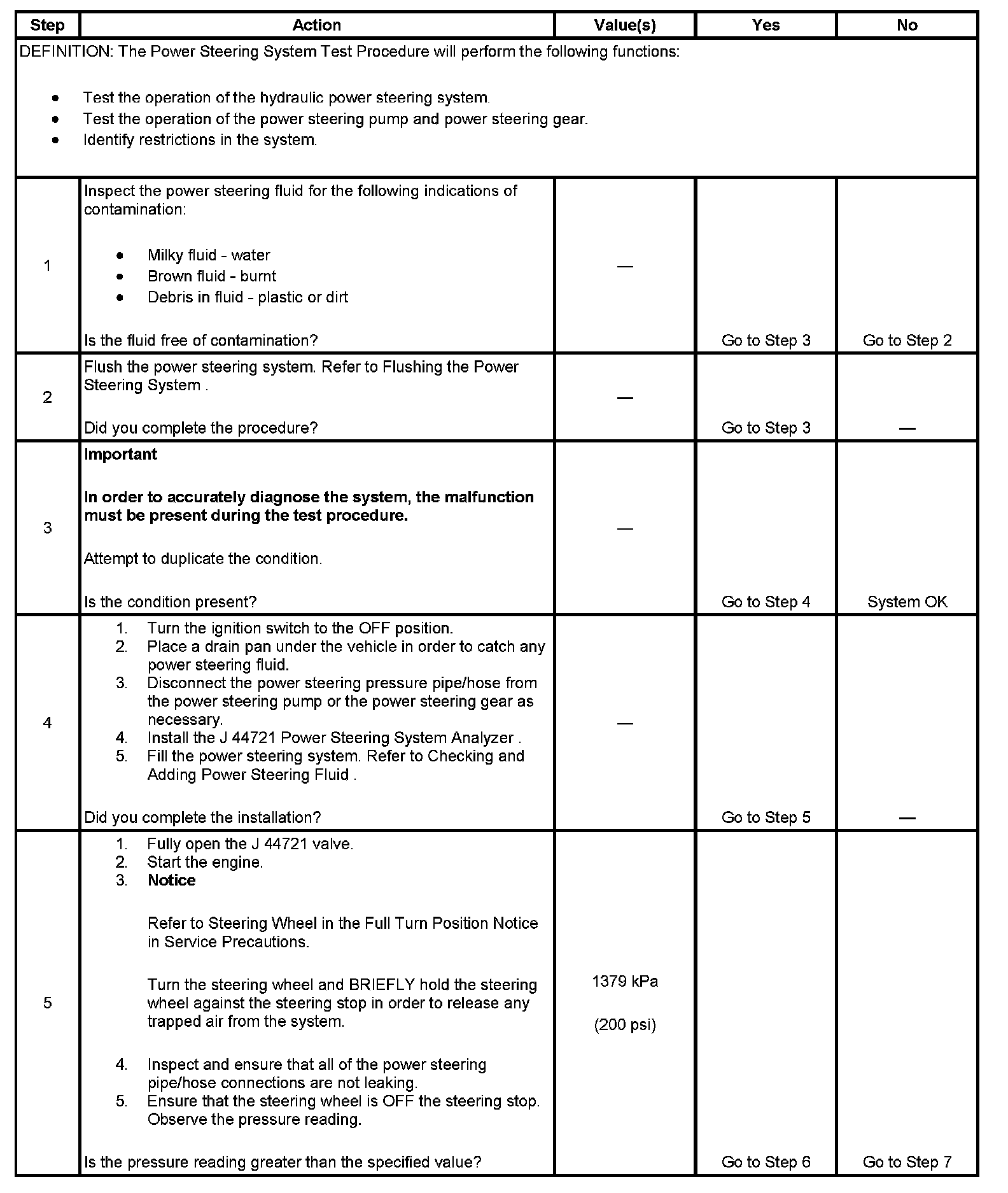 Power Steering System Test Procedure