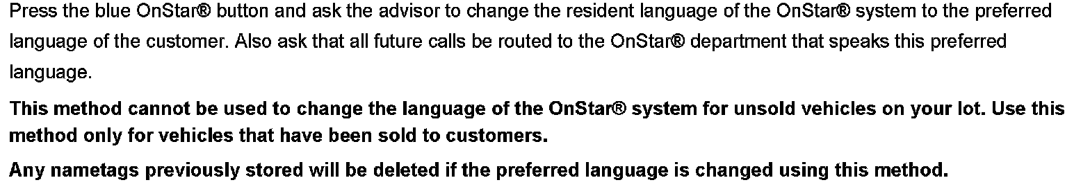 Language Change for OnStar(R) System (U.S. and Canada Only)