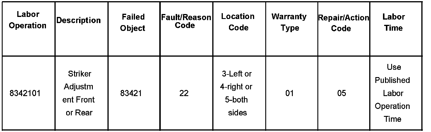 For 2005 and 2006 vehicles - Adjustment of the striker plate is only covered for 1 year or 16,000 miles, whichever occurs first.