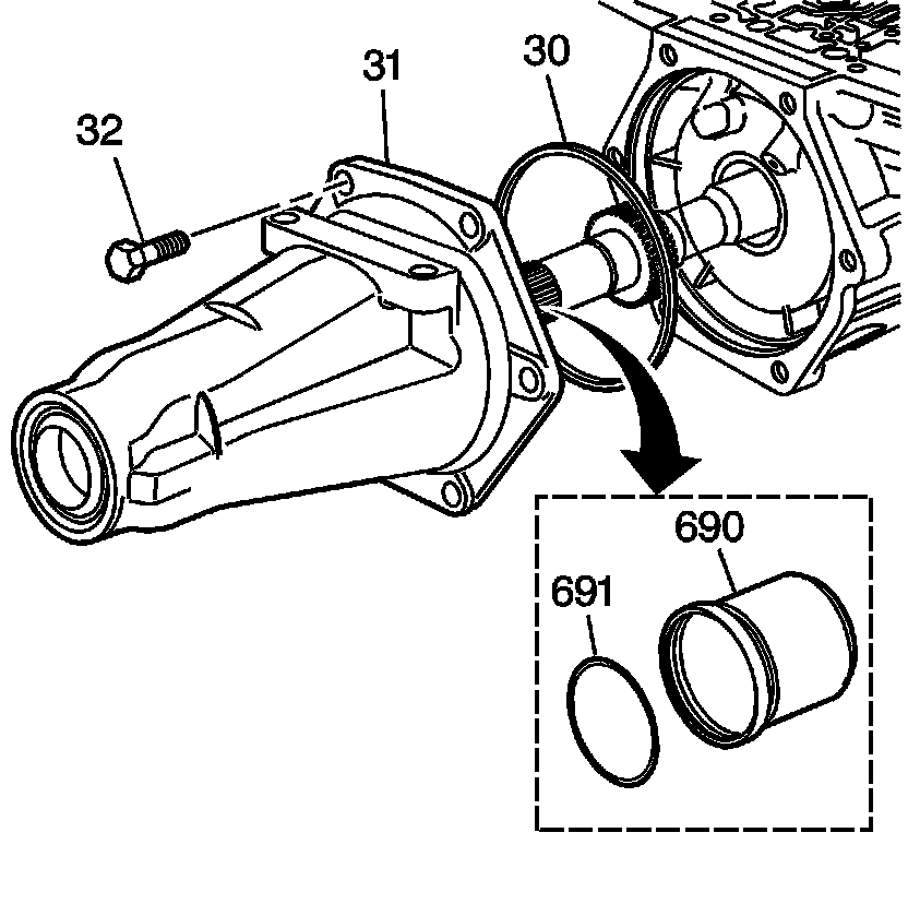 4. Remove the case extension (31) and the case extension to case seal (30).