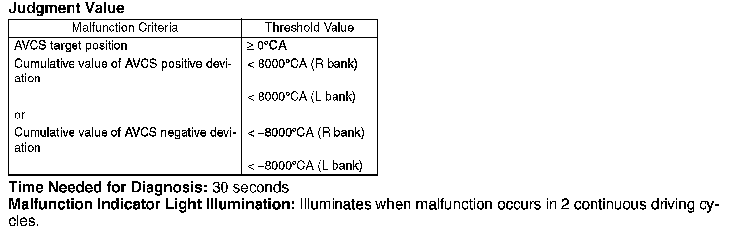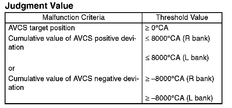 Accumulate the AVCS deviation amount in positive and negative while AVCS is operated. Judge NG when cumulative value is large at interval of certain time (30 seconds).