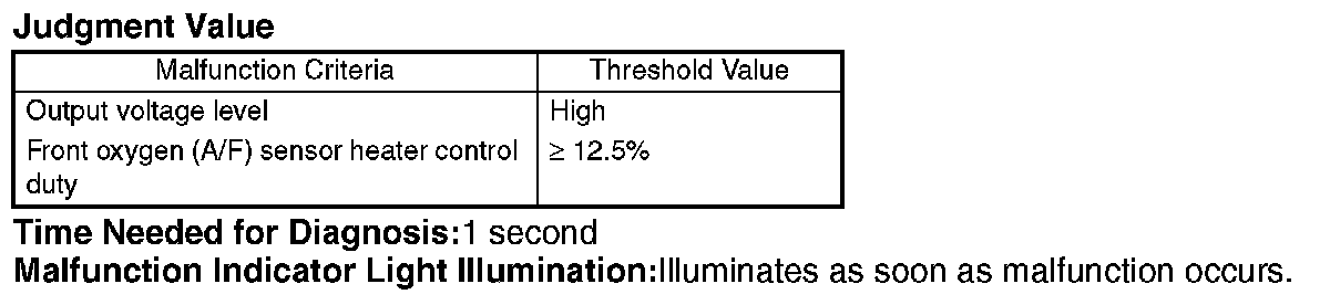 ^ Front oxygen (A/F) sensor activation judgment: Front oxygen (A/F) sensor full activation is not complete, or front oxygen (A/F) sensor half activation is not complete.