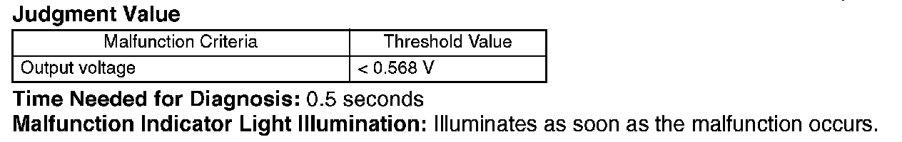 Judge NG when the continuous time of completing the malfunction criteria below becomes more than 0.5 seconds. Judge OK and clear the NG when the malfunction criteria below are not completed.