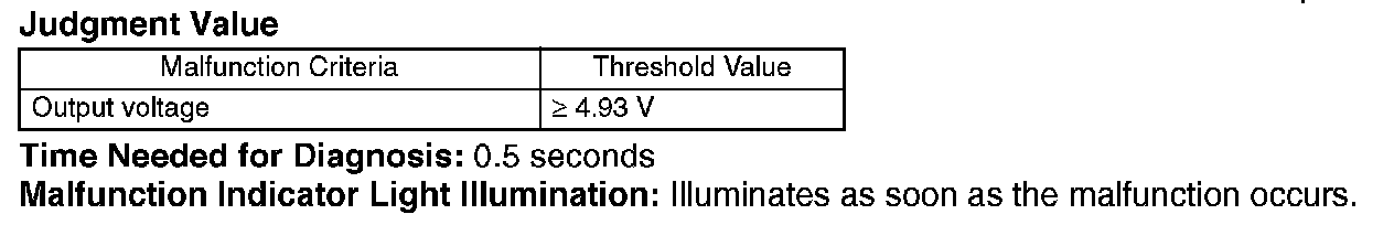 Judge NG when the continuous time of completing the malfunction criteria below becomes more than 0.5 seconds. Judge OK and clear the NG when the malfunction criteria below are not completed.