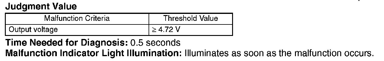 Judge NG when the continuous time of completing the malfunction criteria below becomes more than 0.5 seconds. Judge OK and clear the NG when the malfunction criteria below are not completed.