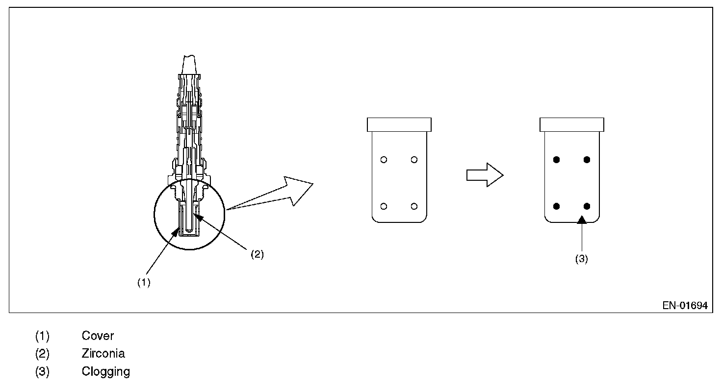 Detect time-lag of front oxygen (A/F) sensor response. Front oxygen (A/F) sensor cover has some ventilation holes for exhaust gas. Clogged ventilation holes are diagnosed. When the holes are clogged, the A/F output variation becomes slow comparing with the actual A/F variation because oxygen which reaches the zirconia layer is insufficient. Therefore, if the cover has clogged holes, the rich to lean judgment in ECM is delayed when the change from rich to lean is caused. Judge NG when the actual A/F variation is slow comparing with the ECM control amount.
