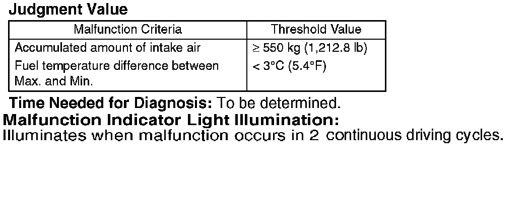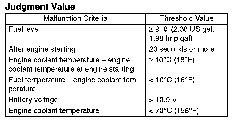 Normally fuel temperature is lower than engine coolant temperature. When the fuel temperature becomes higher than the engine coolant temperature, the range is considered to be shifted, and make an NG judgment.