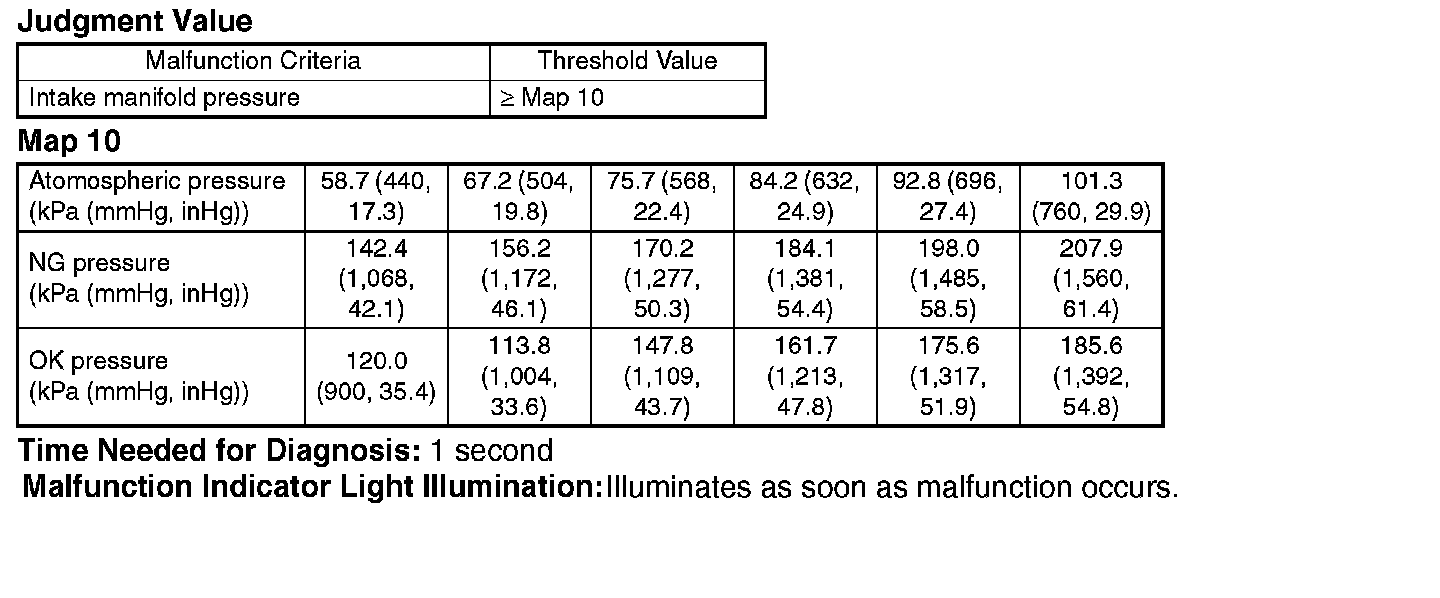 Malfunction Criteria Threshold Value Intake manifold pressure < Map 10