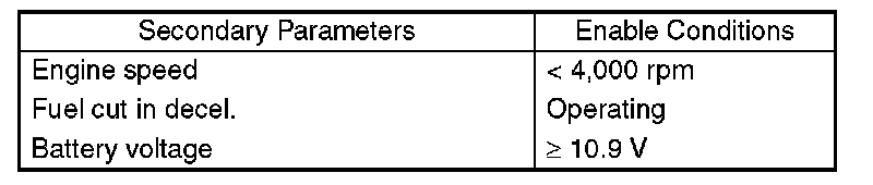 Perform the diagnosis continuously during fuel cut in deceleration at less than 4,000 rpm in engine speed.