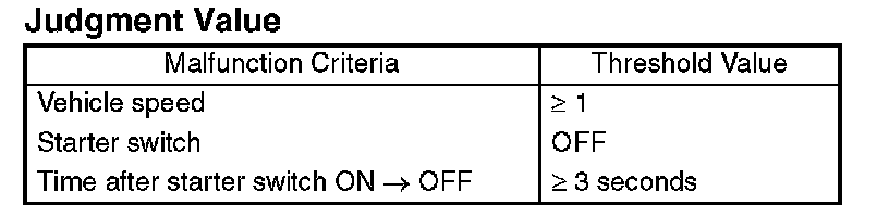 Judge NG when the continuous time of completing the malfunction criteria below becomes more than 4 seconds.