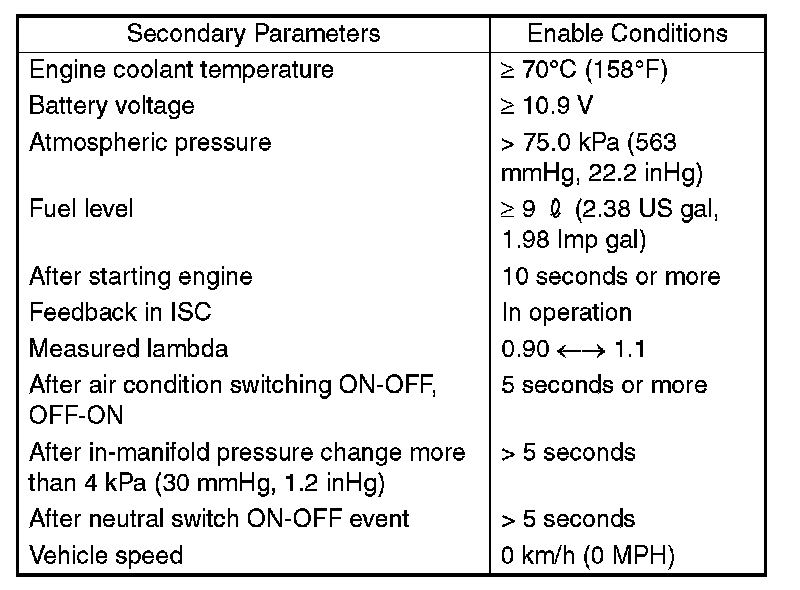 Judge NG when the cumulative time of completing the malfunction criterion below becomes more than the time needed for diagnosis (10 seconds �3 times).