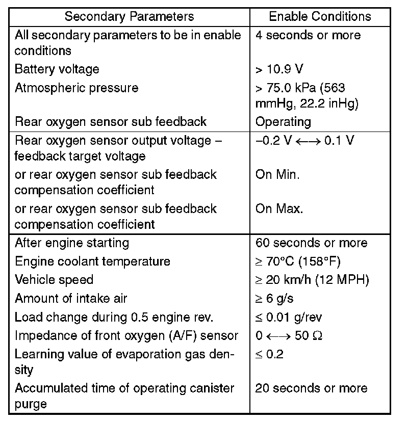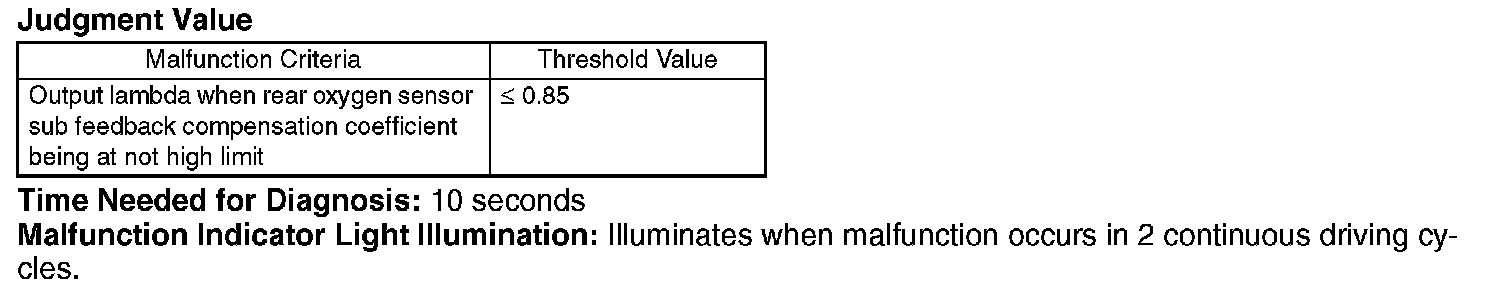 Judge NG when the continuous time of completing the malfunction criteria below becomes more than the time needed for diagnosis (10 seconds). Judge OK and clear NG when the malfunction criteria below are not completed.