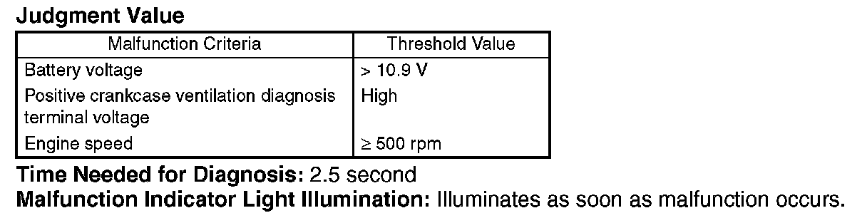 Judge NG when the continuous time until completing the malfunction criteria below becomes more than 2.5 second.