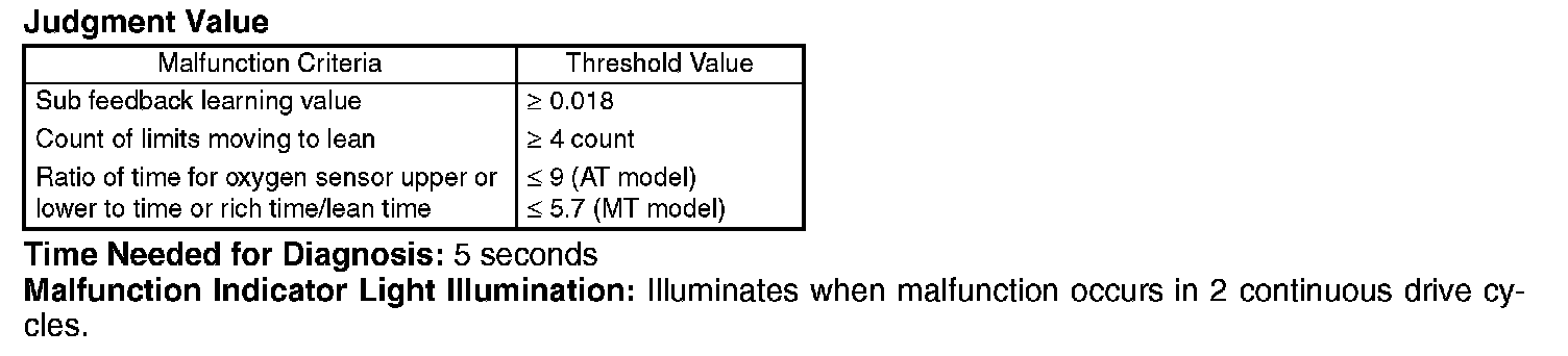 If the sub feedback amount from the engine started till ignition switch OFF is shifted to rich or lean, judge as insufficient sub feedback amount.