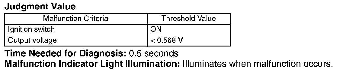 Judge NG when the continuous time of completing the malfunction criteria below becomes more than 0.5 seconds.