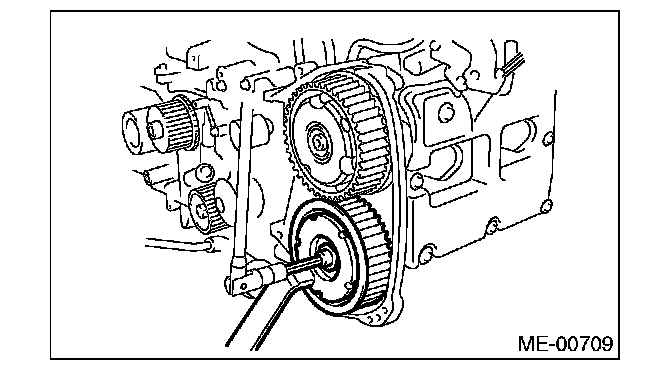 1. Install the cam sprocket. To lock the camshaft, use ST.