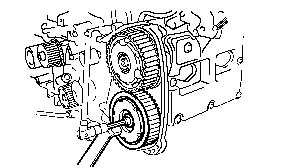 5. Remove the cam sprockets. To lock the camshaft, use ST.
