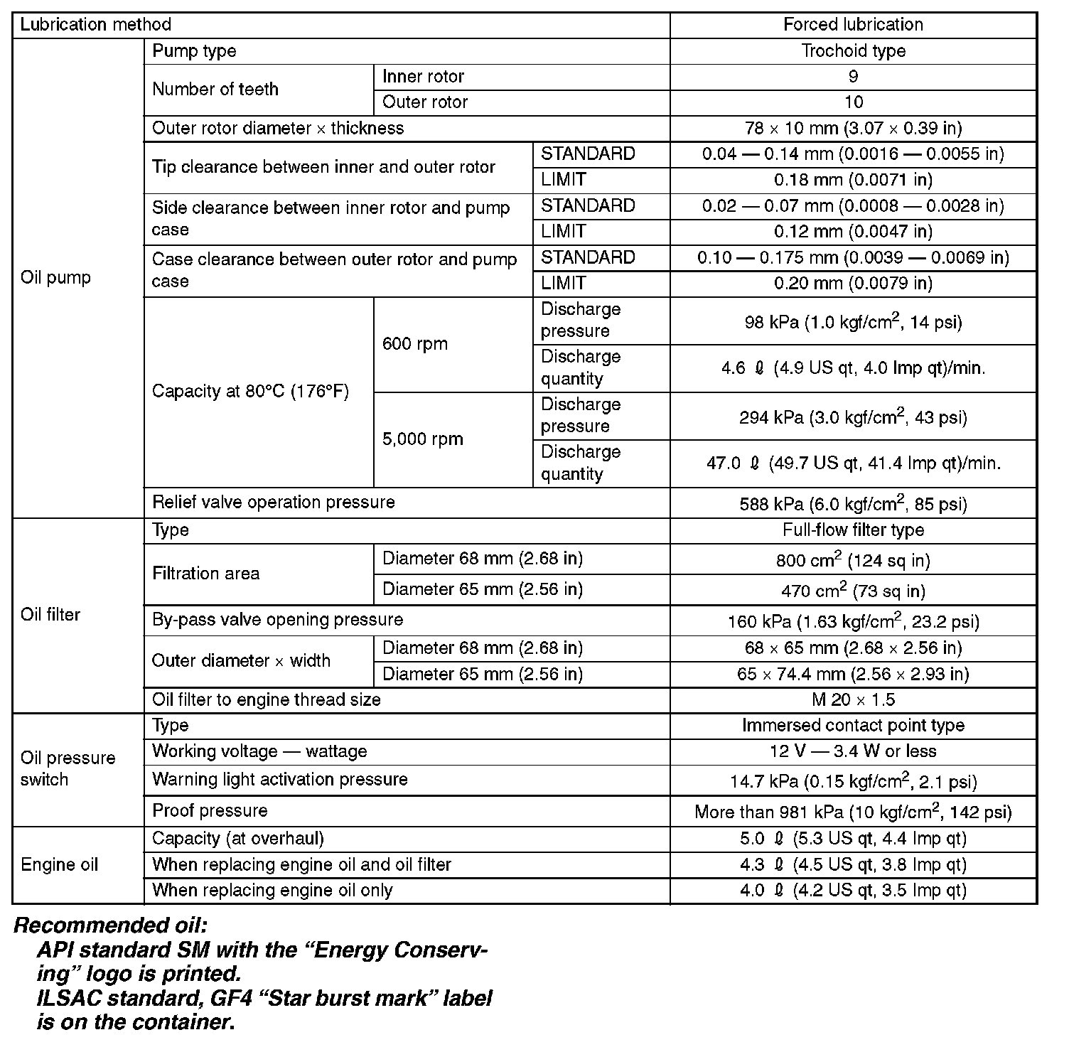 SpecificationRecommended Oil