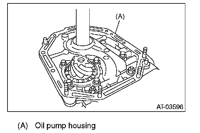 15. Remove the oil pump housing and adjusting thrust washer.
