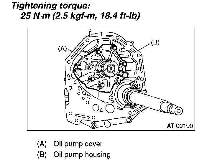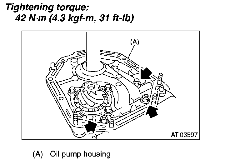 5. After correctly installing the new gasket to the case mating surface, carefully install the oil pump housing assembly. Be careful to avoid hitting the drive pinion against the inside of the case.