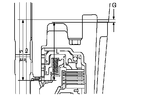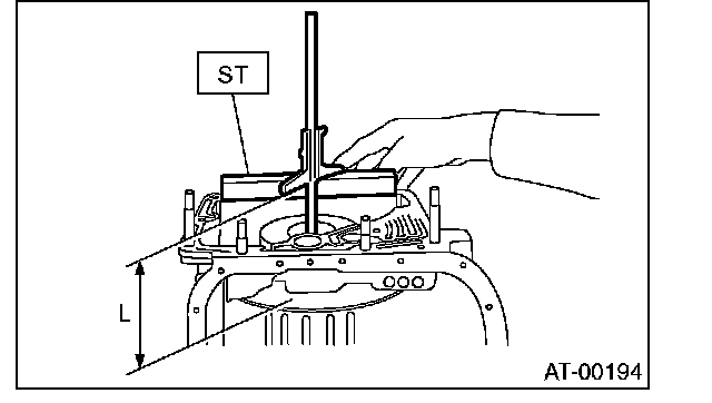 1. Using the ST, measure the distance from the end surface of ST to the recessed portion "L" of the high clutch drum.
