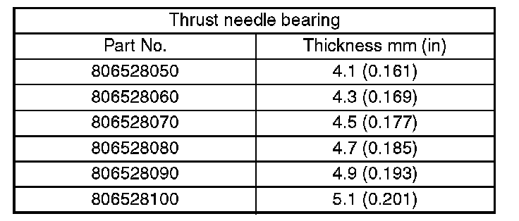 Select suitable bearing race from among those listed in this table so that clearance C is in the 0.25 to 0.55 mm (0.0098 to 0.0217 inch) range.