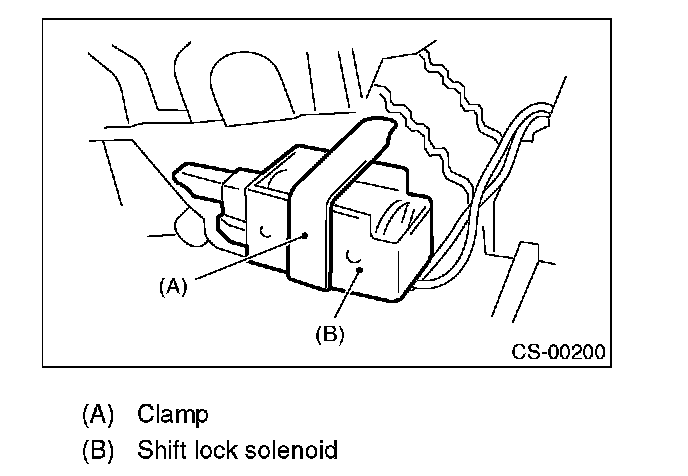 11. Remove the clamp, and then remove the shift lock solenoid.