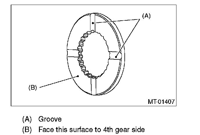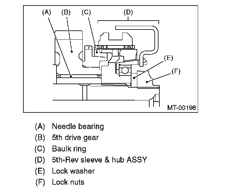 4. Install the baulk ring, needle bearing, 4th drive gear and 4th gear thrust washer to transmission main shaft.