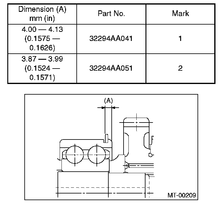 Using the ST, measure the amount (A) of ball bearing protrusion from transmission main case surface and select the proper plate in the following table.