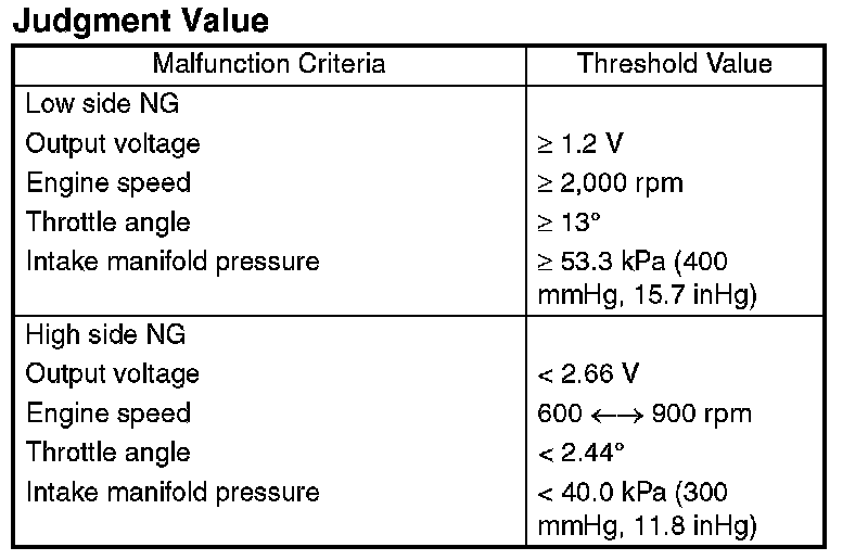 Judge NG when the continuous time of completing the malfunction criteria below becomes more than the time needed for diagnosis.