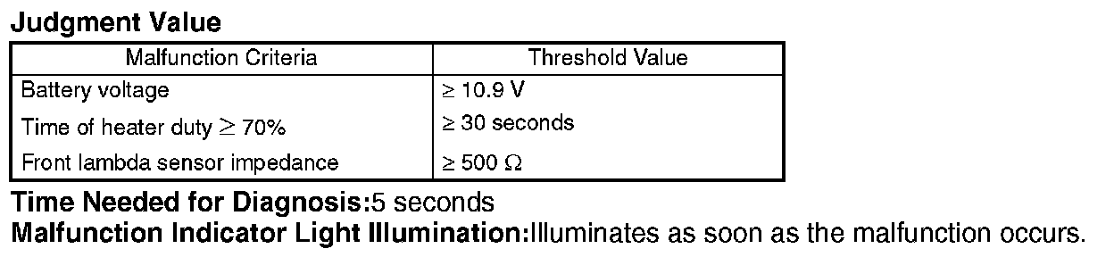 ^ Front oxygen (A/F) sensor heater control: Not allowed to turned on the heater.