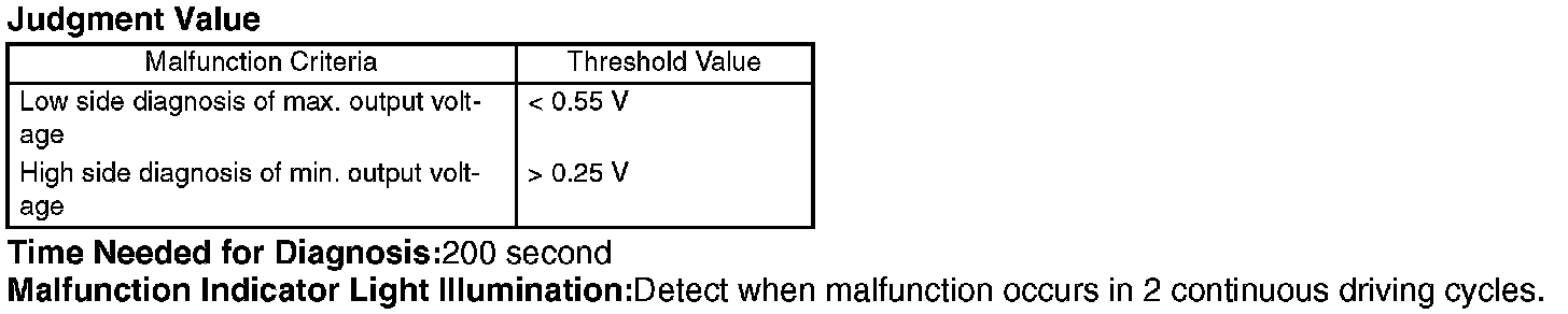 Judge NG when any of the malfunction criteria below are completed.