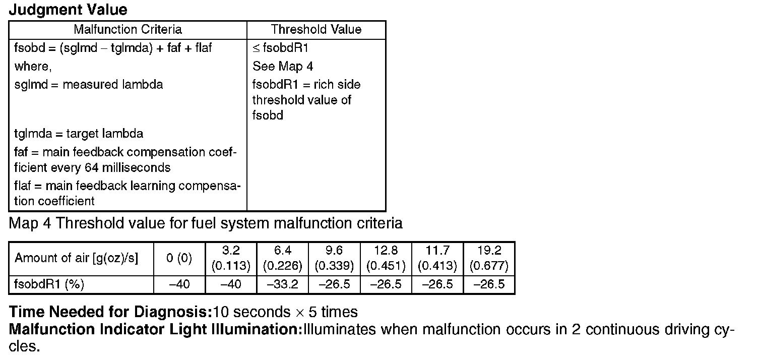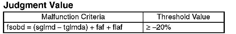 Judge that the fuel system malfunction occurs when the continuous time of completing the malfunction criteria below becomes more than 50 seconds by comparing the diagnosed value (fsobd) with threshold value.