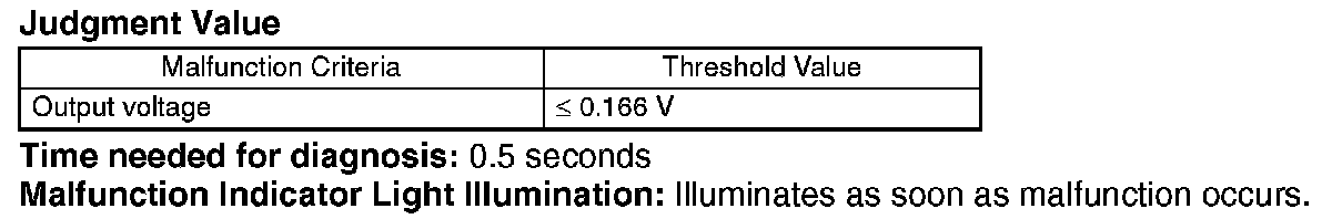 Judge NG when the continuous time of completing malfunction criteria below becomes more than 0.5 seconds. Judge OK and clear NG when the malfunction criteria below is not completed.