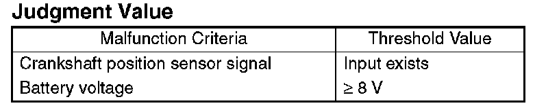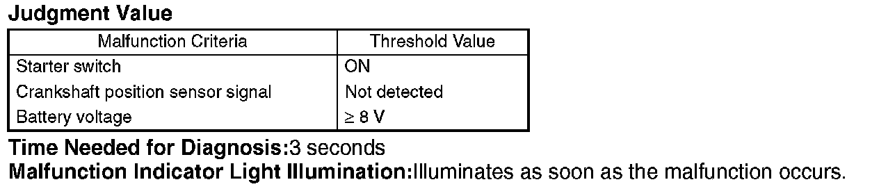 Detect the open or short circuit of crankshaft position sensor. Judge NG when the crankshaft signal does not input regardless of turning the starter.