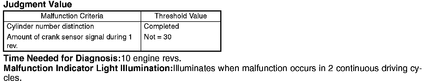 Detect the malfunction of crankshaft position sensor output property. Judge NG when the number of crankshaft signal every 1 revolution becomes abnormal.