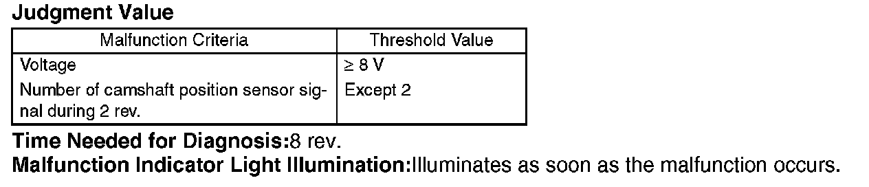 Detect the open or short circuit of camshaft position sensor. Judge NG when the number of camshaft signal remains to be abnormal.