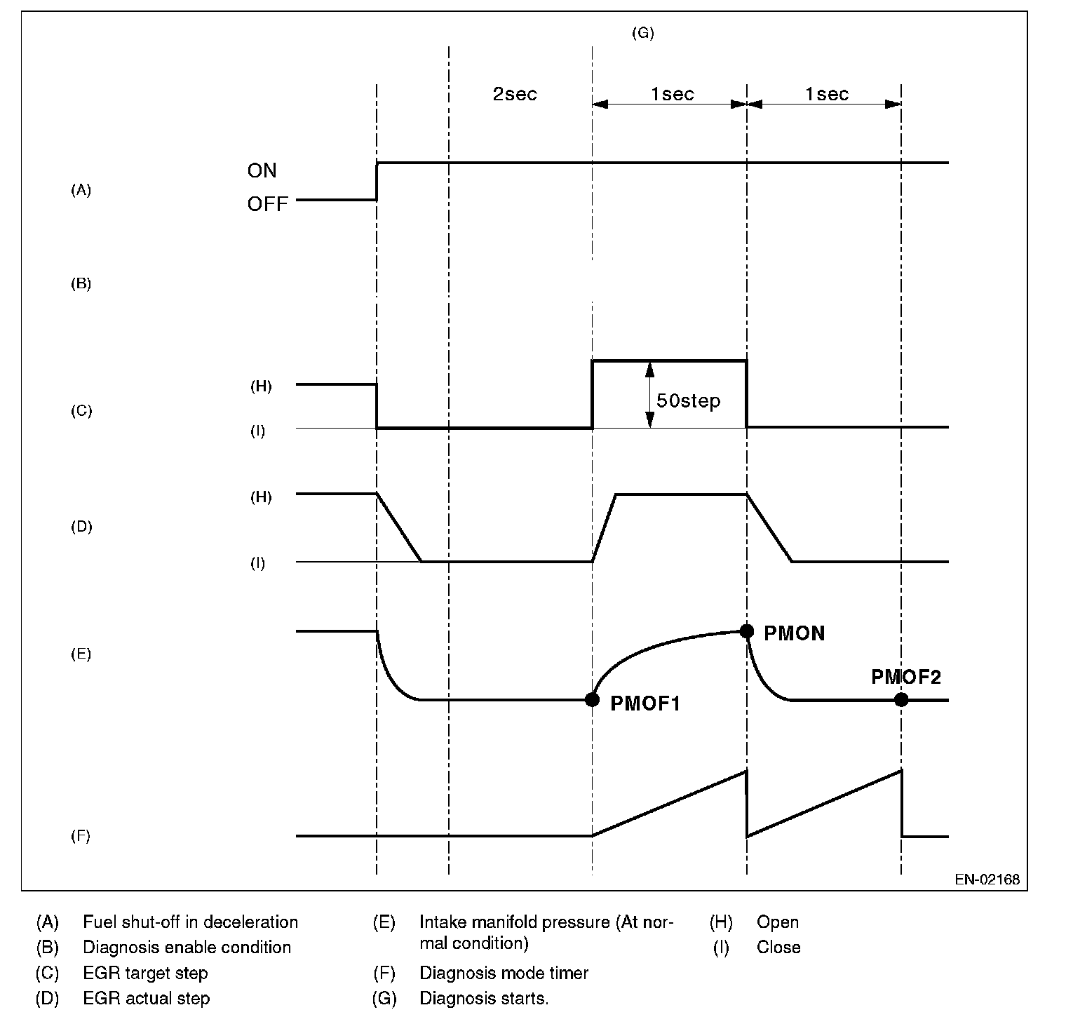 2. PMON is equal to the intake manifold pressure in 1 second after EGR target step is set 50 steps (when enable conditions are completed), and EGR target step is set to 0 step.