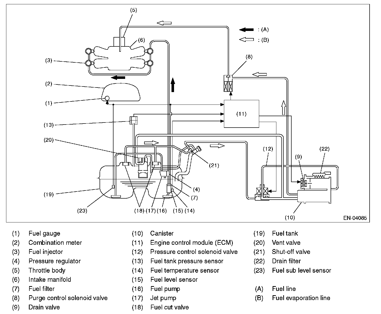 Introduce the negative pressure in the intake manifold to the tank. Approx. 0-> -1.4 kPa (0-> -10.5 mmHg, 0-> -0.41 inHg)