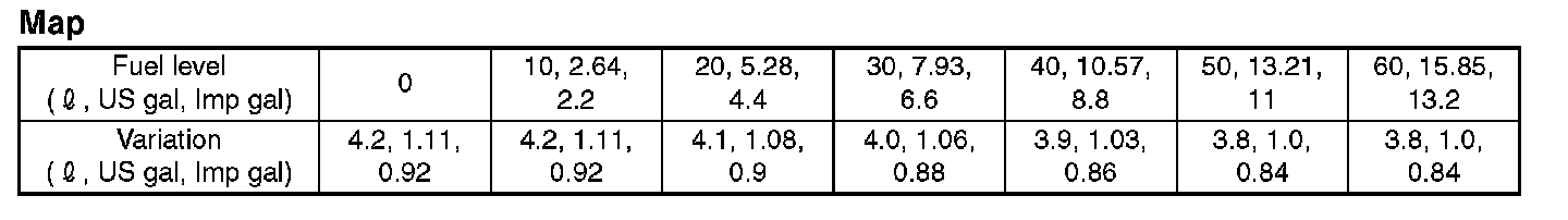 - No fuel rolling of above 22(0.53 US gal, 0.44 Imp gal) for more than 40 seconds. Judge normal when all the calculations are completed.