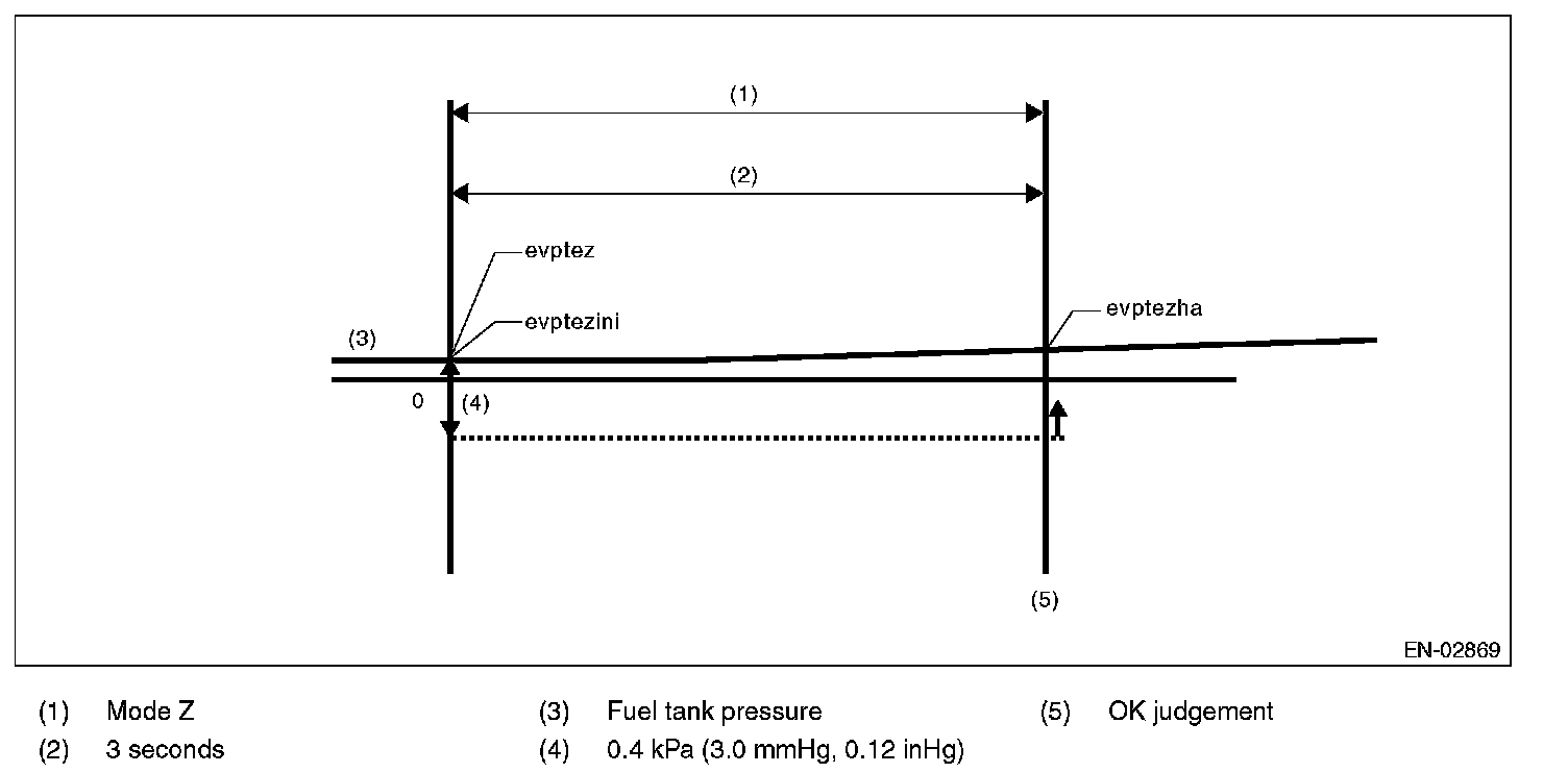 When performing the leakage diagnosis of EVAP system, CPC has to operate normally. Therefore, mode Z is used to diagnose the CPC open fixation. If the CPC open fixation trouble is detected, the EVAP system leakage diagnosis is cancelled.