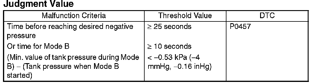 When the pressure above (desired negative pressure) is reached, Mode C is entered. In this case, if the tank pressure does not become the desired negative pressure, cancel the diagnosis.