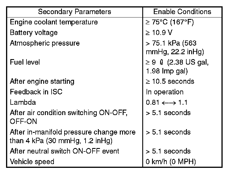 Judge OK and clear NG when the continuous time of completing the malfunction criterion below becomes more than the time needed for diagnosis (10 seconds).