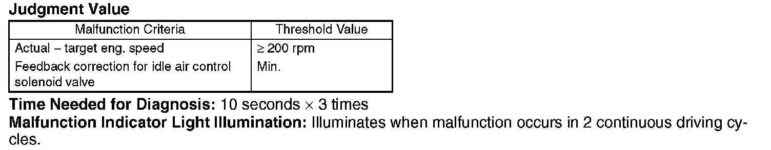 Judge NG when the continuous time of completing the malfunction criterion below becomes more than the time needed for diagnosis (10 seconds x 3 times).