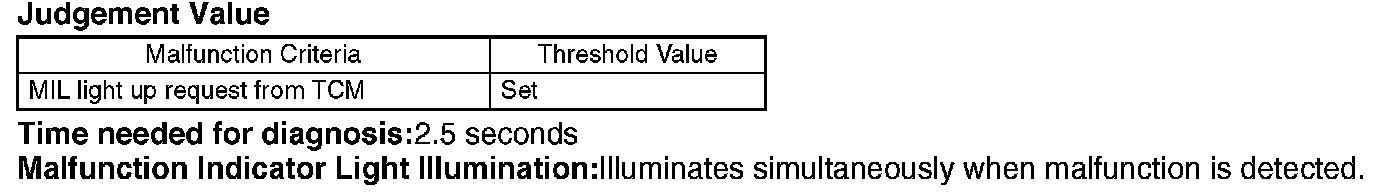 Judge NG when the continuous time of completing the malfunction criteria below becomes more than 2.5 seconds. Judge OK and clear the NG when the malfunction criteria below are not completed.