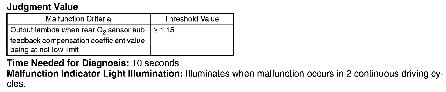 Judge NG when the continuous time of completing the malfunction criteria below becomes more than 10 seconds. Judge OK and clear NG when the malfunction criteria below are not completed.