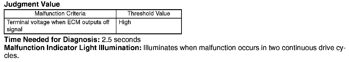 Judge NG when the continuous time of completing the malfunction criteria below becomes more than 2.5 seconds. Judge OK and clear the NG when the malfunction criteria below are not completed.
