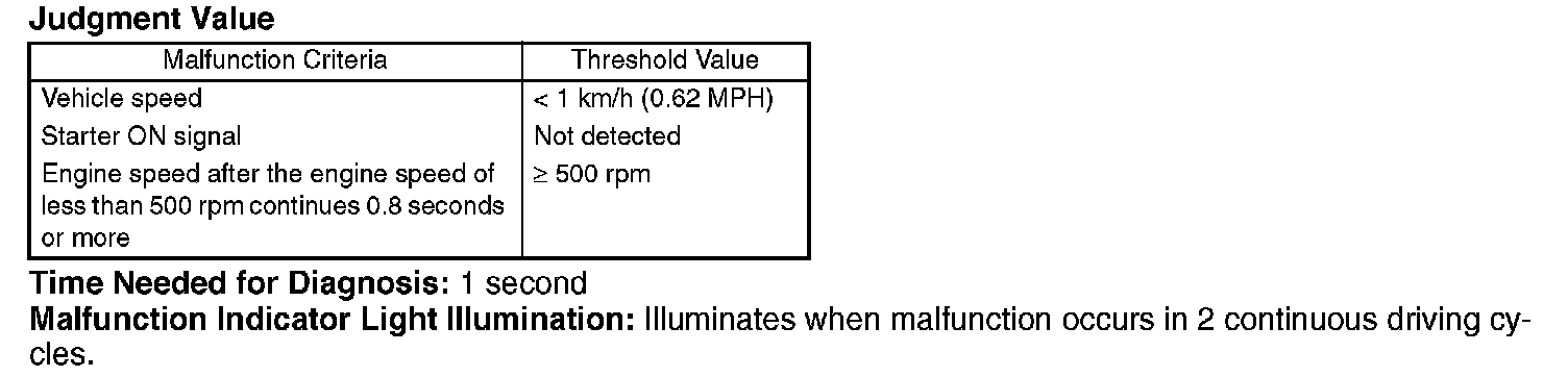 Detect the open or short circuit of starter SW. Judge OFF NG when it turns to "after engine starting" while the starter has never been set to ON.
