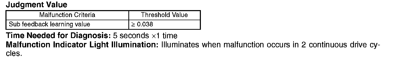Judge NG when the continuous time of completing the malfunction criteria below becomes more than 5 seconds. Judge OK when it becomes less than 5 seconds.